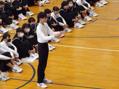 2020年10月30日 18時31分6校時、3年生が屋内運動場で、入退場を含めた合唱リハーサルを行いました。各クラスが今までの練習の成果を発揮し、美しいハーモニーを響かせました。他のクラスの合唱を最後までしっかりと聴いたのは、今回が初めてです。誰もがもっと上手く歌いたいと思っているはず。すてきな歌詞だなあと共感し、みんなと呼吸を合わせて歌うことの楽しさ、そして、全員で一つの音楽を作り上げる喜びを感じてほしいです。文化祭まで残り10日。3年生にはこの2年半で培われたチームワークを活かしながら、さらに良いものを目指し、聴いている人の心に響く合唱を披露してほしいです。